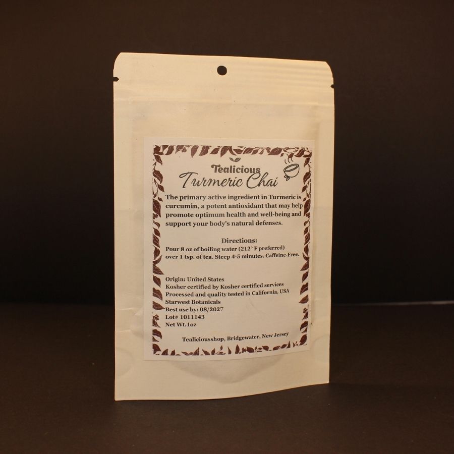 The primary active ingredient in Turmeric is curcumin, a potent antioxidant to help promote optimum health and well-being and support  your body's natural defenses. This uniquely different flavorful blend offers a delicious chai flavor while providing you with therapeutic qualities. Chai Teas are usually sweetened, so try adding a pinch of stevia, a dash of vanilla, or even milk. It tastes great whether served hot or cold! Caffeine-Free.